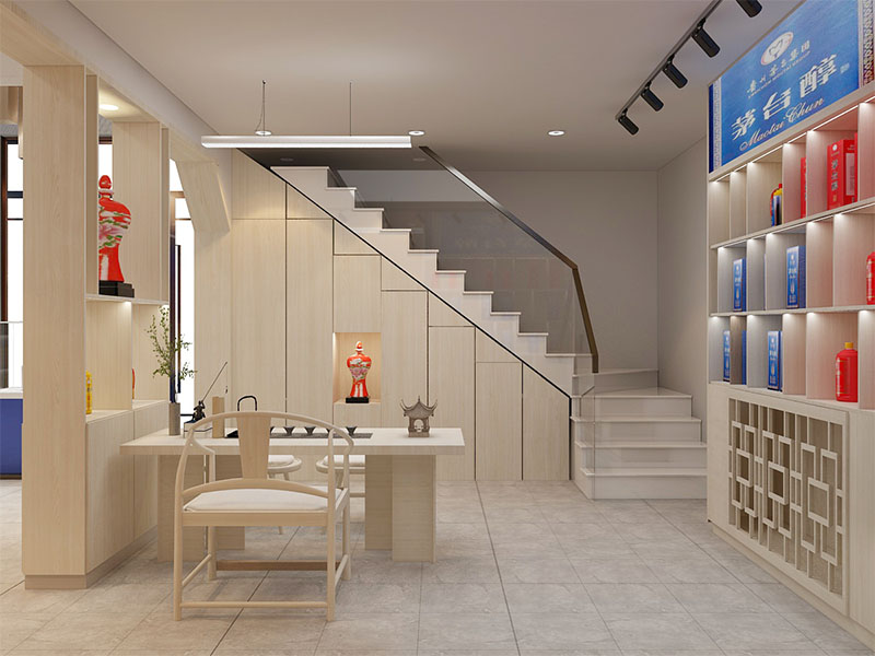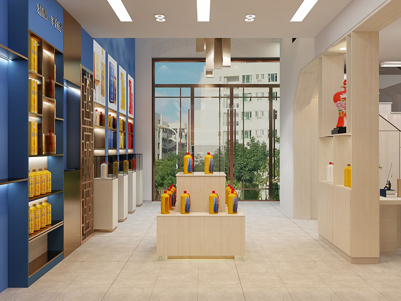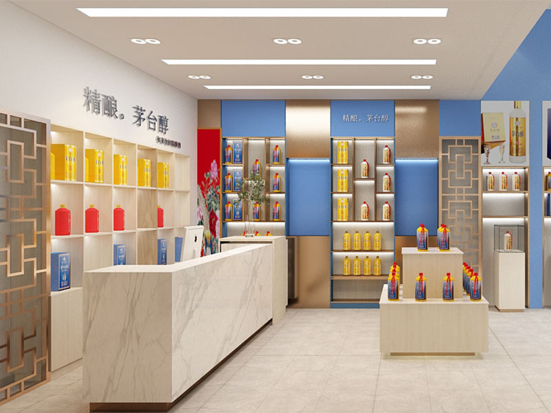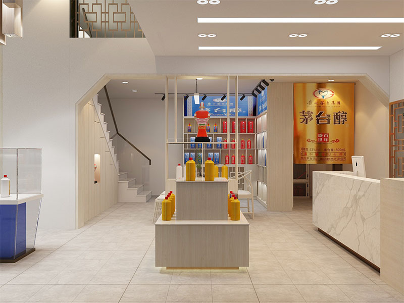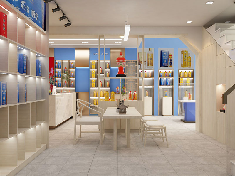 设计理念: 茅台醇店面装修效果体现出高端、典雅与品牌文化的融合。其装修风格以现代简约为主,注重细节与品质,营造出高雅而舒适的购物环境。色彩上,以蓝色和米白色为主色调,既体现了沉稳大气的感觉,又彰显了品牌的独特魅力。茅台醇店面装修还注重顾客的参与感和体验感,通过品酒区、文化展示区等区域设置,让顾客在购物的同时深入了解茅台醇的品牌故事和文化内涵。