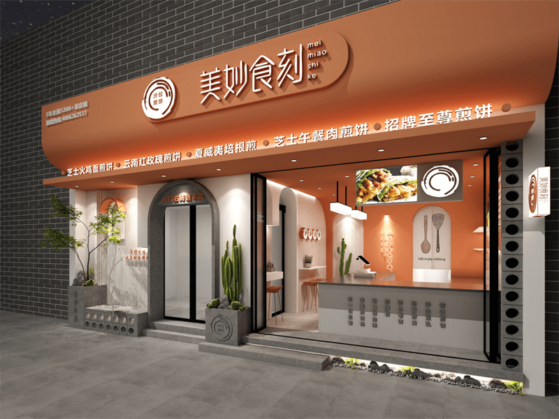 设计理念: 印象济南-美妙食刻煎饼店装修效果融合了传统风格与现代风格,以温馨的灯光和质朴的木质装饰营造出家的感觉。店内墙面挂有煎饼的制作过程,别有一番文化韵味。适合快捷用餐或悠闲小憩。整体设计简约而不失格调,让顾客在品尝地道煎饼的同时,享受一段美好的味觉与视觉双重盛宴。