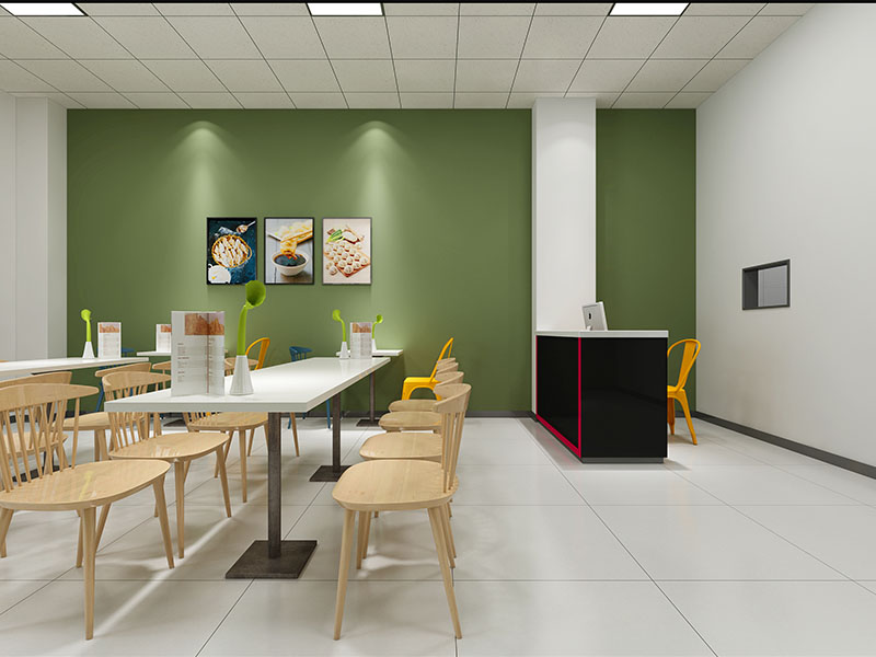 设计理念: 济南惠美饺子餐饮店装修设计,以现代相结合的风格为主,注重温馨,传统以及有一定文化氛围的特色环境。在色彩搭配上以深绿色为主,营造出家的感觉。店内悬挂着与饺子相关的知识和照片,赋予了店铺新的生命力。