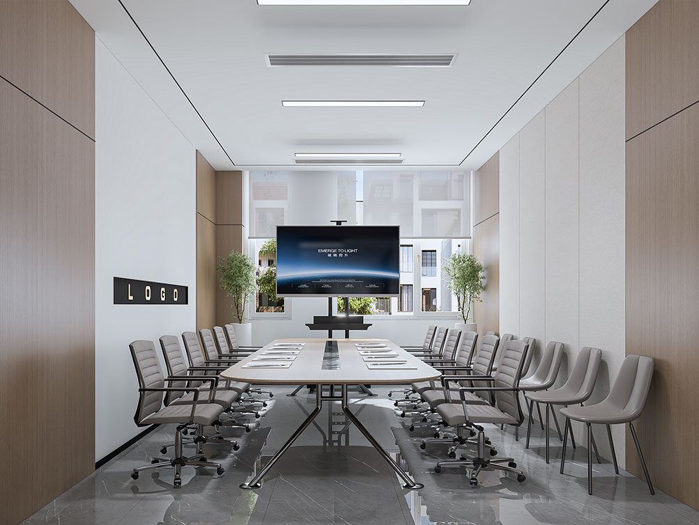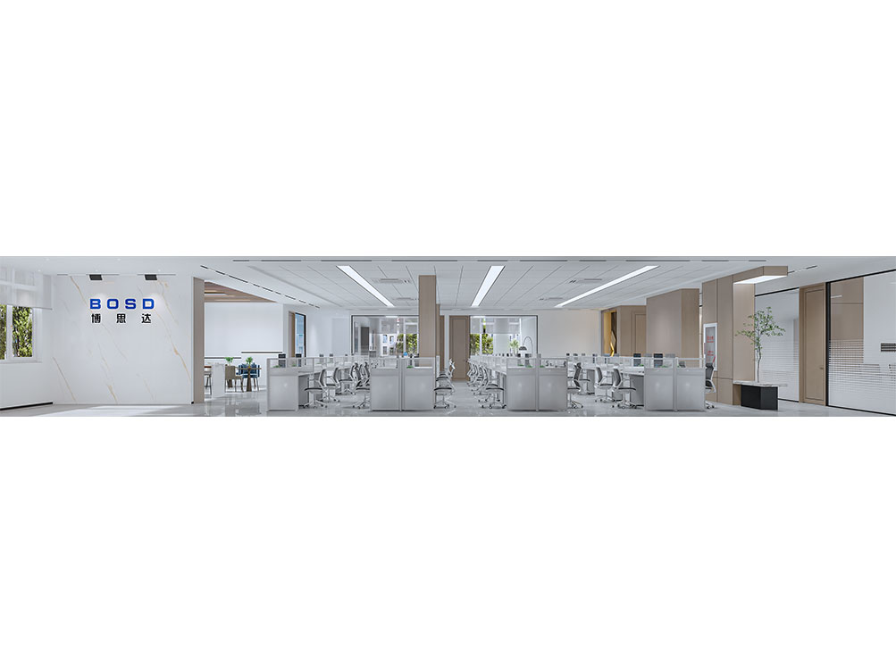 博思达办公区装修效果以 “高效协作 + 现代简约” 为核心,主色调选用浅灰、原木色与白色,营造清爽通透且兼具活力的办公氛围。空间布局上,采用开放工位与独立会议室结合的设计,开放区用低矮隔断划分区域,方便员工即时沟通,每张工位配备多功能收纳柜与可调节台灯;独立会议室按需求分小型洽谈室与大型会议空间,均配备高清投影、白板与隔音棉,满足不同协作场景;同时融入实用细节,茶水间设长条操作台与储物柜,墙面点缀简约装饰画与绿植,休闲角摆放舒适沙发与小茶几,供员工短暂放松;整体空间无冗余设计,既保证办公效率,又通过原木元素与软装搭配传递温馨感,契合现代办公对功能性与舒适度的双重需求。