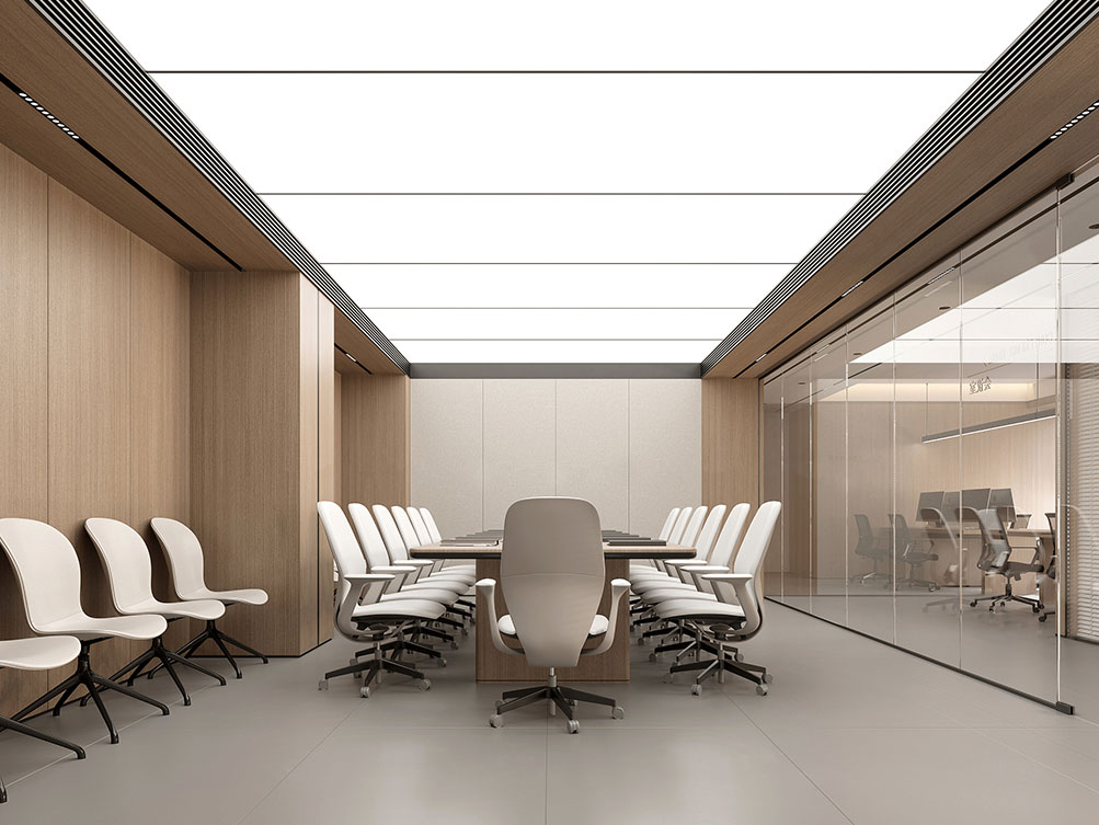 设计理念: 济南奥克斯中心办公室以温润木调为主线,搭配浅灰地面与嵌入式灯光,打造出济南办公室装修中标志性的简奢氛围。开放式长桌适配团队协作,玻璃隔断既保障通透又划分功能区,嵌入式柜体兼顾收纳与美学,结合柔光设计,契合济南商务空间 “实用 + 质感” 的装修需求,是济南办公室装修中现代高效风的典型呈现。