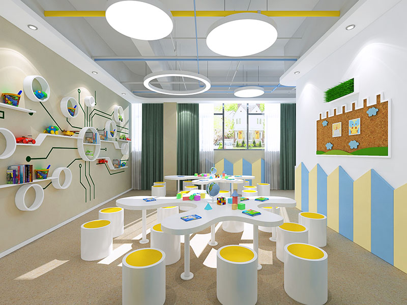 设计理念: 济南早教中心装修效果展示,能够激发孩子们的对于事物的兴趣和加强探索欲望。早教中心往往采用明亮色调来搭配,比如红色、绿色、亮橙等颜色混合搭配,营造出活泼而不失温馨的氛围。此外,早教中心的装修还会和教育元素相融合,早教中心还会选用环保、无毒的装修材料,确保孩子们的健康安全。