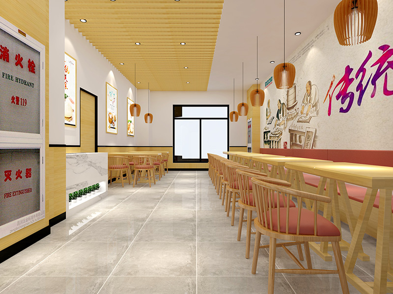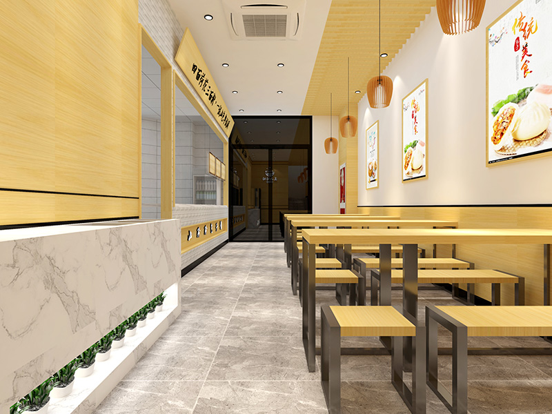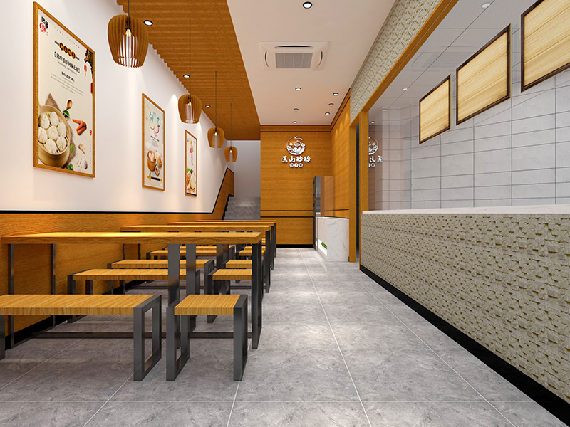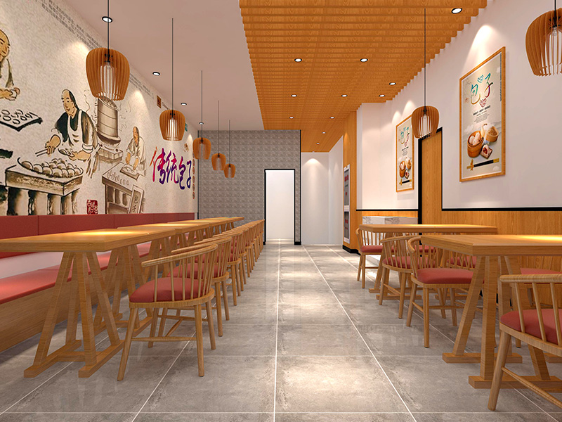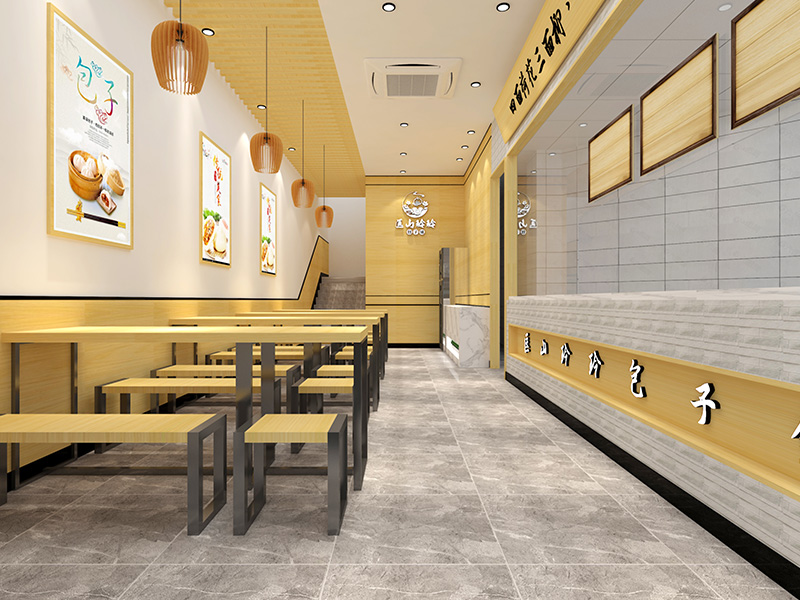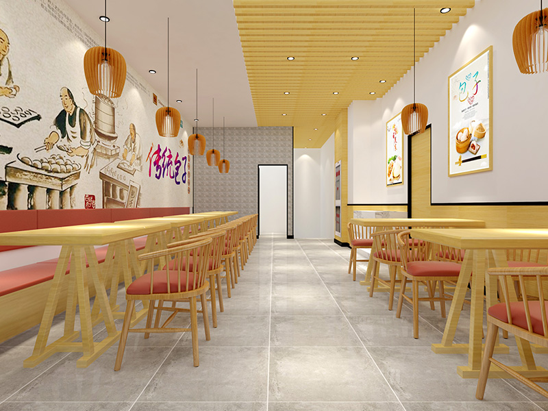 设计理念: 济南玲玲包子铺装修效果以自然、温馨为主题,整体色调偏暖,营造出一种舒适愉悦的用餐环境。店内大量运用木质材料,展现出自然质朴的氛围。同时,店内的墙壁上还挂上了包子的来源,让顾客更能了解到食物的制作步骤。柔和的照明设计,如暖色调的吊灯和壁灯,更是为用餐环境增添了一份温馨感。